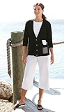 Just toss on this sweater and pants set and go for no-fuss instant style. Our versatile pants set features a plush waffle-knit cardigan emblazoned with contrasting fabric pockets, and long sleeves. About 25 1/2 " long. Soft twill-woven pants have full elastic waist and cargo pockets at the cropped hems. 21" inseam. Sweater and pants set features black top with white pants. Pure cotton. Washable. USA. Sizes: XS(4), S(6-8), M(10-12), L(14-16), XL(18).