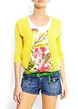 Cropped knit cardigan with a v-neck three-quarter length sleeves and ribbed detailing.