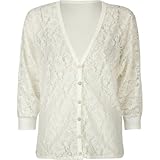 Full Tilt lace cardigan. Knit back panel. Button front. 3/4 dolman sleeves. Loose fit.