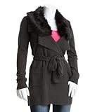 Stay warm and stylishly chic in this long 2b cardigan, featuring dramatic faux fur collar, waist-sculpting self-tie, and front pocket. Pairs well with any look. Center back to hem: 30".